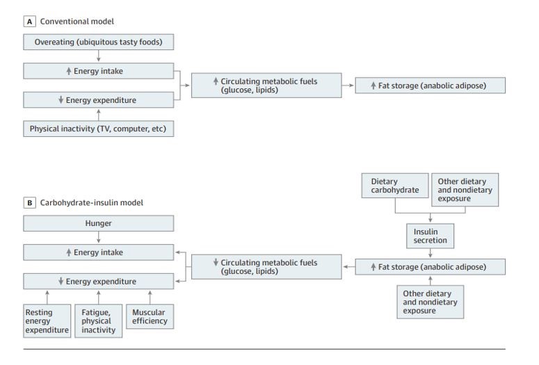 Ludwig, D. S., & Ebbeling, C. B. (2018). The Carbohydrate-Insulin Model of Obesity: Beyond „Calories In, Calories Out“. JAMA Internal Medicine, 178(8), 1098–1103. https://doi.org/10.1001/jamainternmed.2018.2933